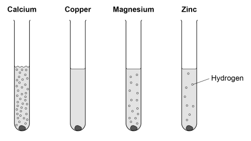 - If strips of magnesium, zinc, and copper are placed into dilute hydrochloric acid:
