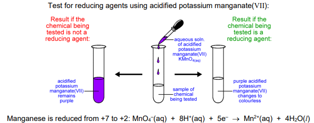 - Acidified potassium manganate(VII) \( (\text{KMnO}_4) \)