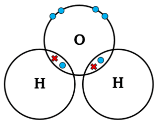 | H2O | H – O – H | Single | 2 | Oxygen shares 2 electrons with 2 hydrogen atoms | ![]() |