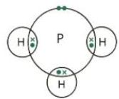 Phosphorus shares 1 electron with each of 3 hydrogen atoms, similar to NH3 in Phosphine (PH3). Give dot and cross structure.