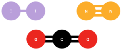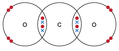 | CO2 | O = C = O | Two double bonds | 2 (double) | Carbon forms double bonds with two oxygen atoms | ![]() |