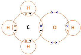 - Describe the formation of covalent bonds in simple molecules, including CH₃OH, C₂H₄, O₂, CO₂ and N₂. Use dot-and-cross diagrams to show the electronic configurations in these and similar molecules