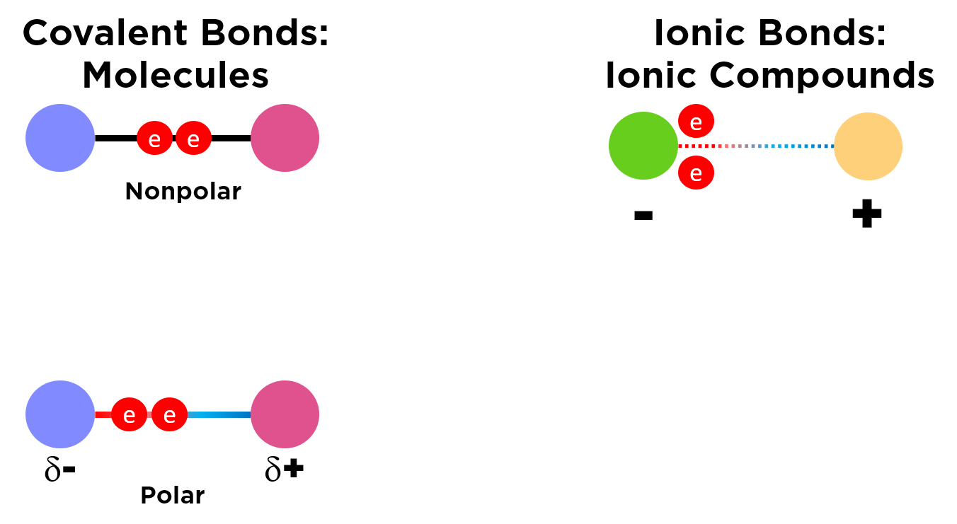 In covalent bonding, electrons are shared between atoms. In contrast, in ionic bonding, electrons are transferred from a metal to a non-metal, creating ions.