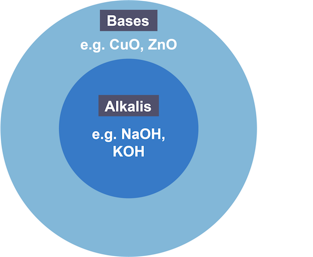 - All alkalis are bases, but not all bases are alkalis.