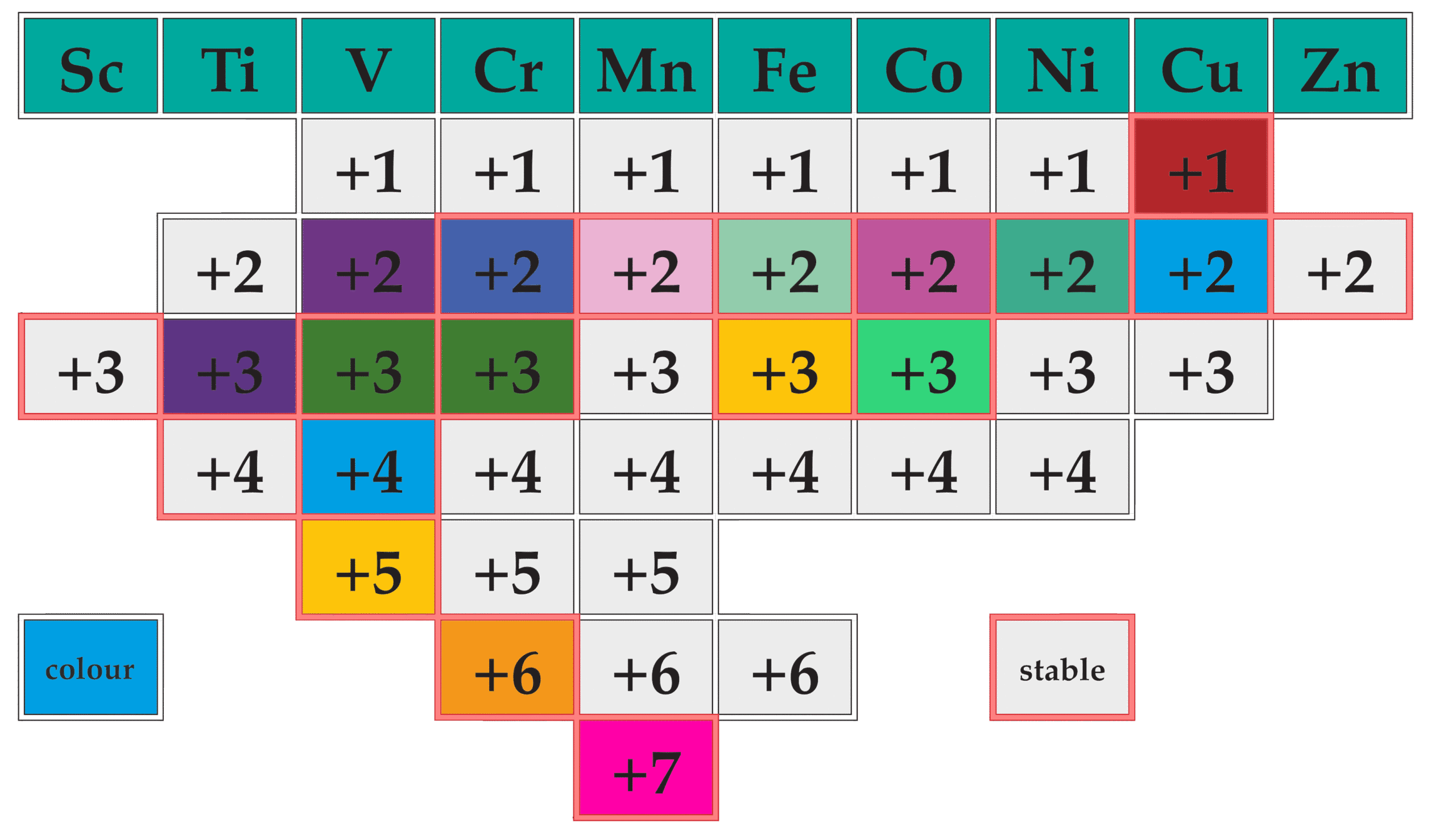 - This is a key chemical property distinguishing them from main-group metals, which usually have only one common oxidation state.