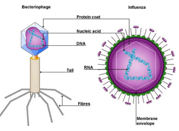 • Not true cells → made of genetic material + protein coat.