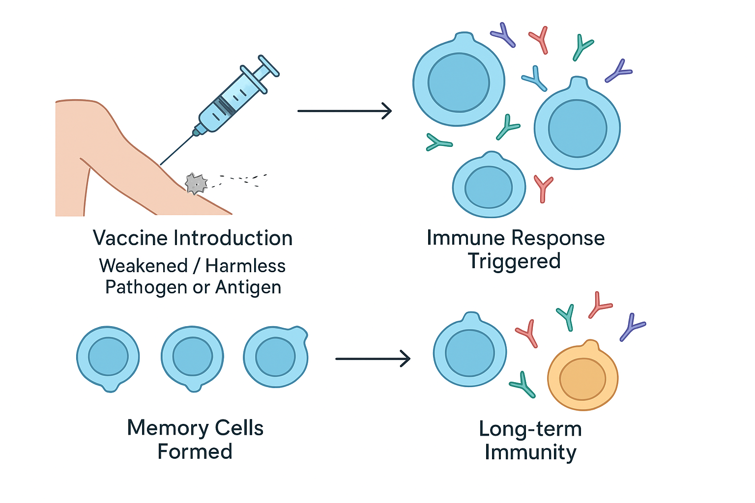 👉 Memory Trick: V-A-M → Vaccine → Antibodies → Memory cells