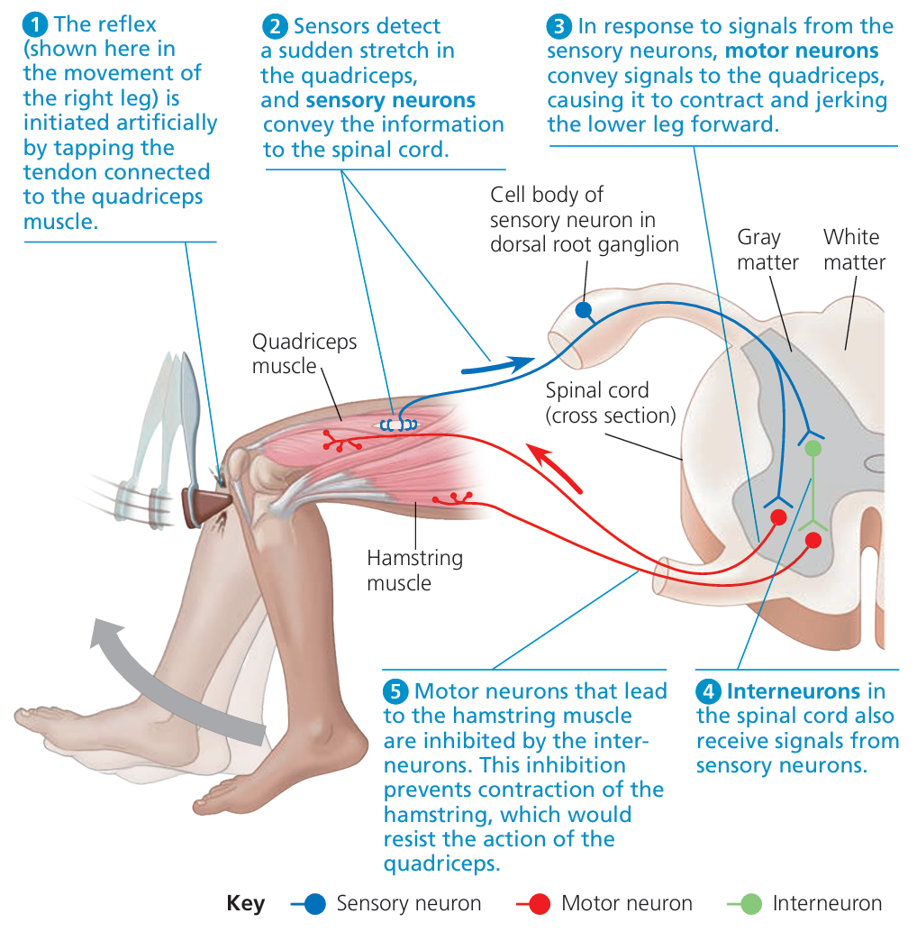 - Describe a reflex action as a means of automatically and rapidly integrating and coordinating stimuli with the responses of effectors (muscles and glands)