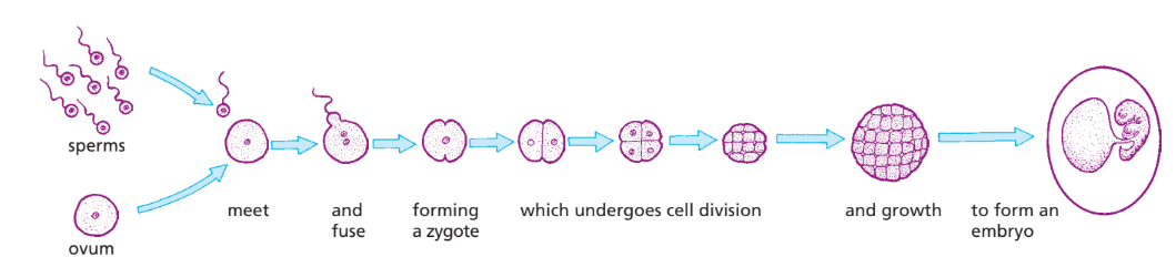 - Produces a zygote (fertilised egg).