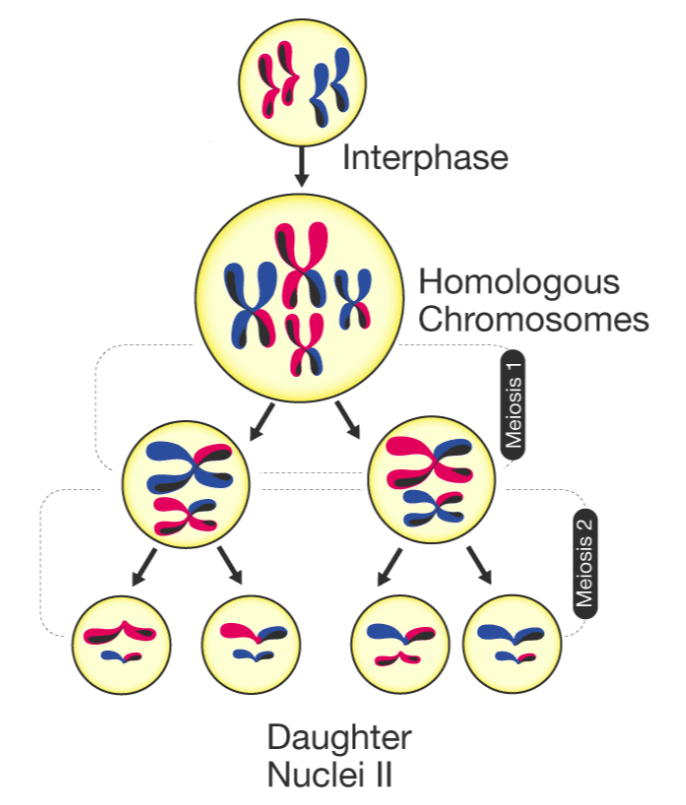 | Chromosome number | Diploid → Haploid |