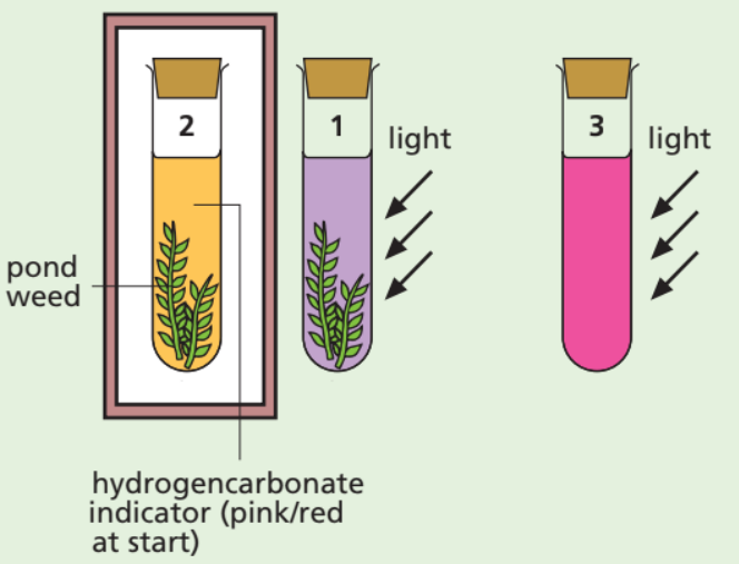 - Understand and describe the effect of light and dark conditions on gas exchange in an aquatic plant using hydrogencarbonate indicator solution