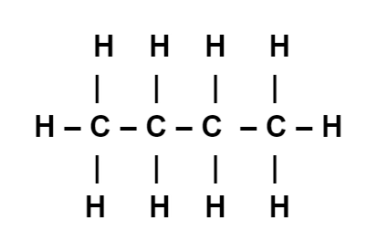 | Butane | C₄H₁₀ | CH₃–CH₂–CH₂–CH₃ | ![]() |