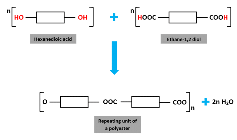 - The polymer formed contains linkages such as ester (–COO–) or amide (–CONH–) bonds.