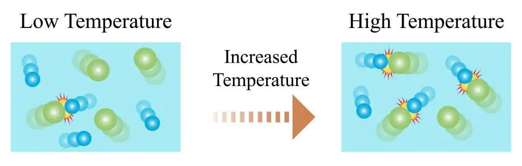 - Higher probability of collisions having sufficient energy → faster reaction.