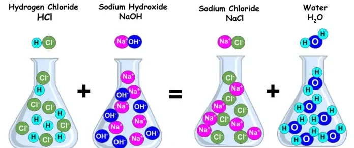 \( \text{HCl} + \text{NaOH} \rightarrow \text{NaCl} + \text{H}_2\text{O} \)