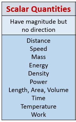- Know that the following quantities are scalars: distance, speed, time, mass, energy and temperature.