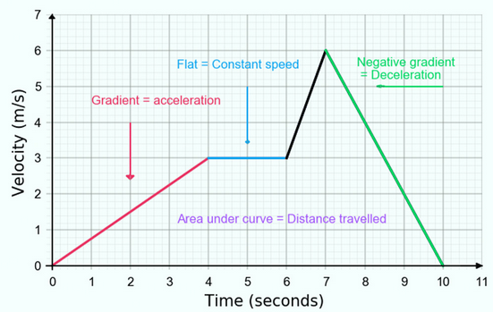 - The gradient (slope) of the graph represents acceleration.