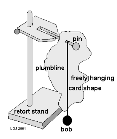 - As a check, you may suspend from a third point; its vertical should pass through (or very near) the same intersection point if the experiment is accurate.