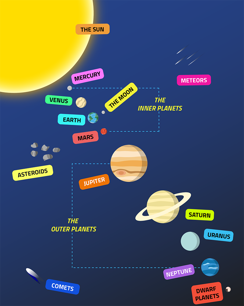 (b) the eight named planets and know their order from the Sun