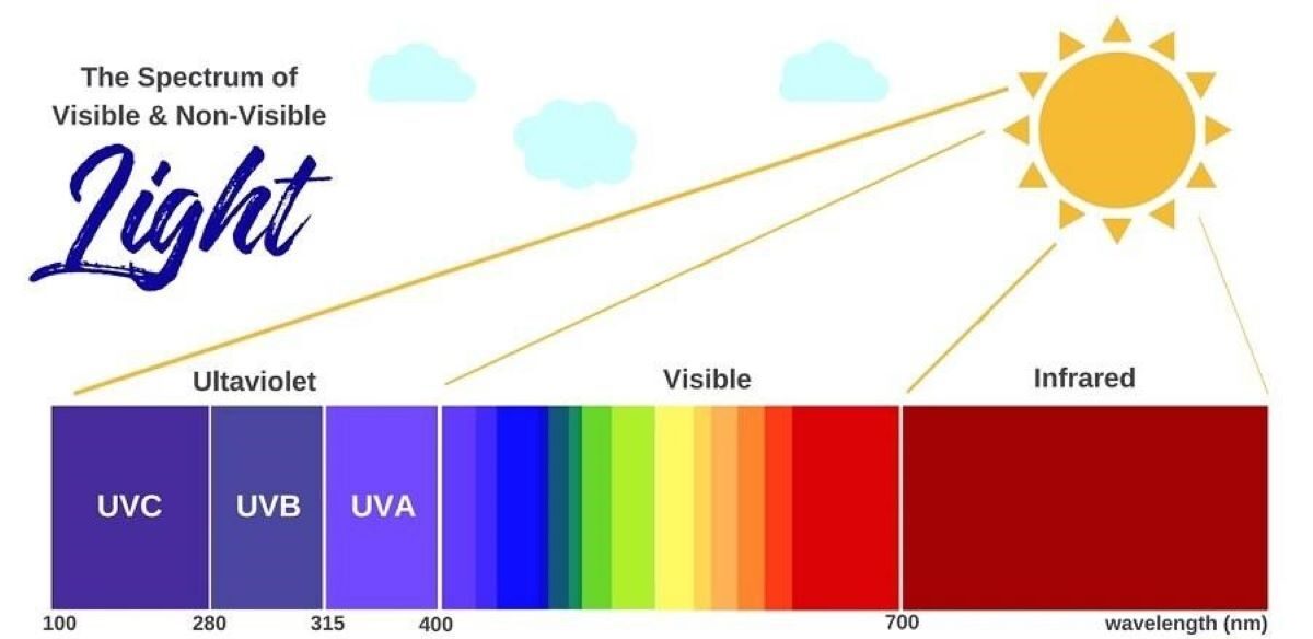 - Ultraviolet (UV): Higher-frequency radiation, responsible for tanning, vitamin D production, but also harmful effects like skin damage.