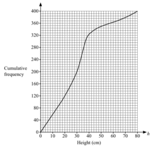 A student measures the height, h cm, of each of 400 plants.