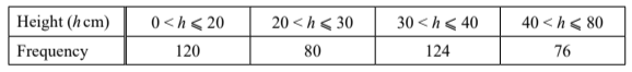 (b) The heights are also shown in the frequency table.