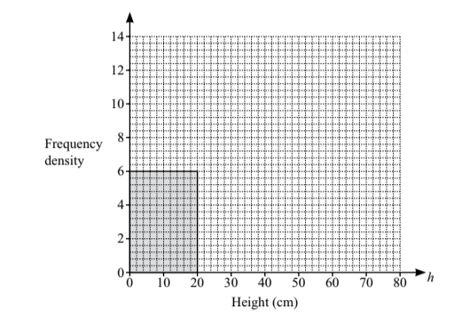 Complete the histogram using the frequency table.