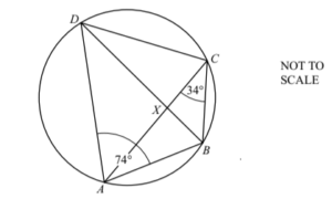 The diagram shows a cyclic quadrilateral ABCD. BD and AC intersect at X.