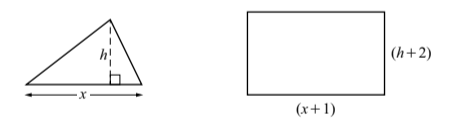 The height of a triangle is h and the height of a rectangle is (h + 2).