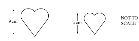 - Height ratio is same as linear ratio: 9/x = 6/5