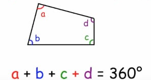- Rule: \( \angle ABC + \angle BCD + \angle CDA + \angle DAB = 360^\circ \)