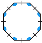 Sum of interior angles = \( (8 – 2) \times 180^\circ = 6 \times 180^\circ = 1080^\circ \)