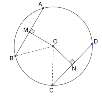 - Drop perpendiculars from O to AB and CD. Let the feet of the perpendiculars be M and N.