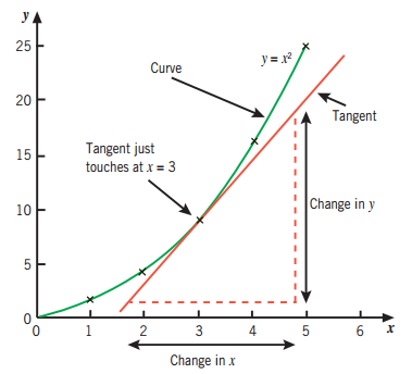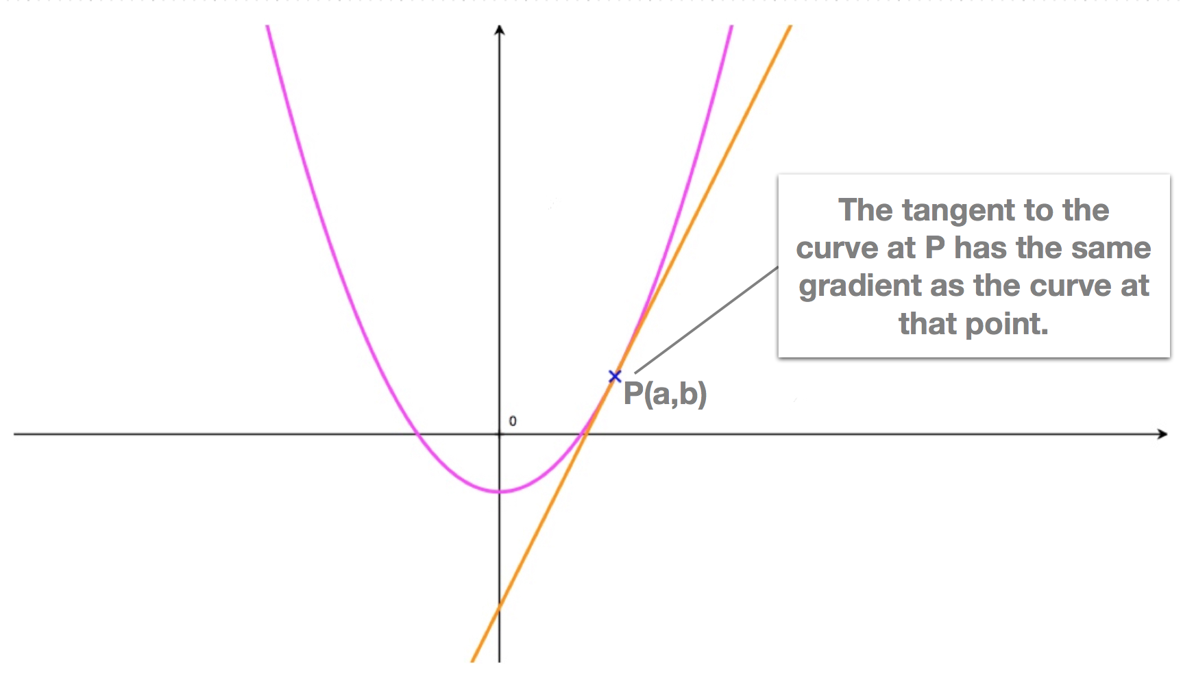 Differentiation is the process of finding the gradient (or slope) of a curve at a given point. Since curves do not have constant gradients, we estimate the gradient at a particular point by drawing a tangent to the curve at that point.