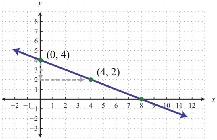 Use two points on the line: \( (0, 4) \) and \( (4, 2) \).