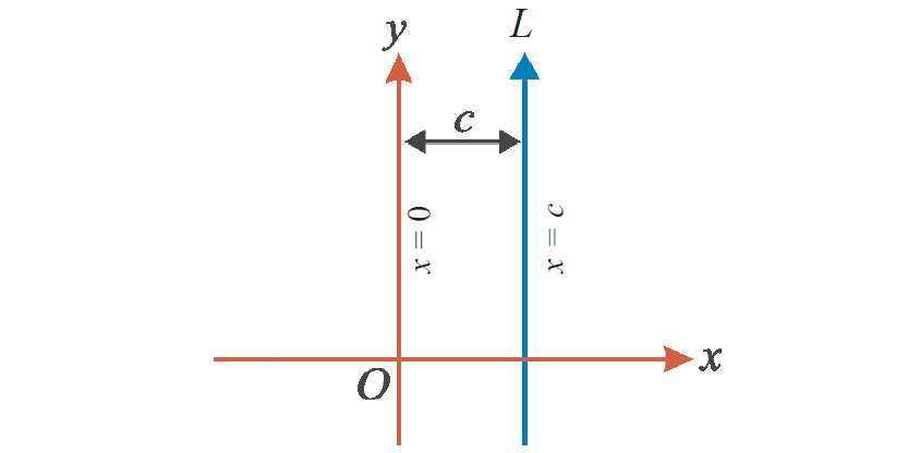 - a vertical line crossing the x-axis at \( x = c \) (gradient is undefined)