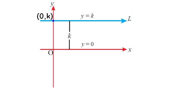 - a horizontal line crossing the y-axis at \( y = k \) (gradient = 0)