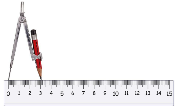 Now open the compass to 3 cm. Place the compass at point C and draw another arc to intersect the previous arc.