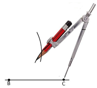 Open your compass to 4 cm. Place the compass at point B and draw an arc above the line.