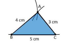 Construct triangle ABC with sides: AB = 4 cm, BC = 5 cm, and AC = 3 cm.