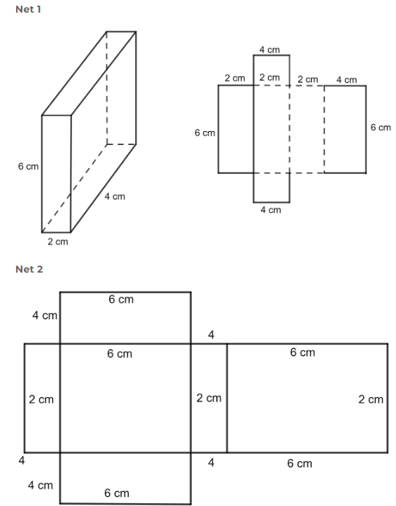 A cuboid has dimensions 6 cm by 4 cm by 2 cm. Draw its net and calculate its total surface area.
