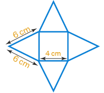 Given a net of a square pyramid with base 4 cm and slant height 6 cm, calculate its total surface area.