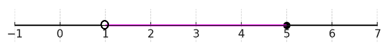 Number Line: Open circle at 1, closed circle at 5, shaded region in between.