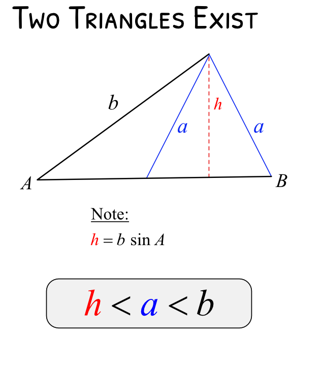 2 solutions – when two different triangles can be formed (ambiguous case)