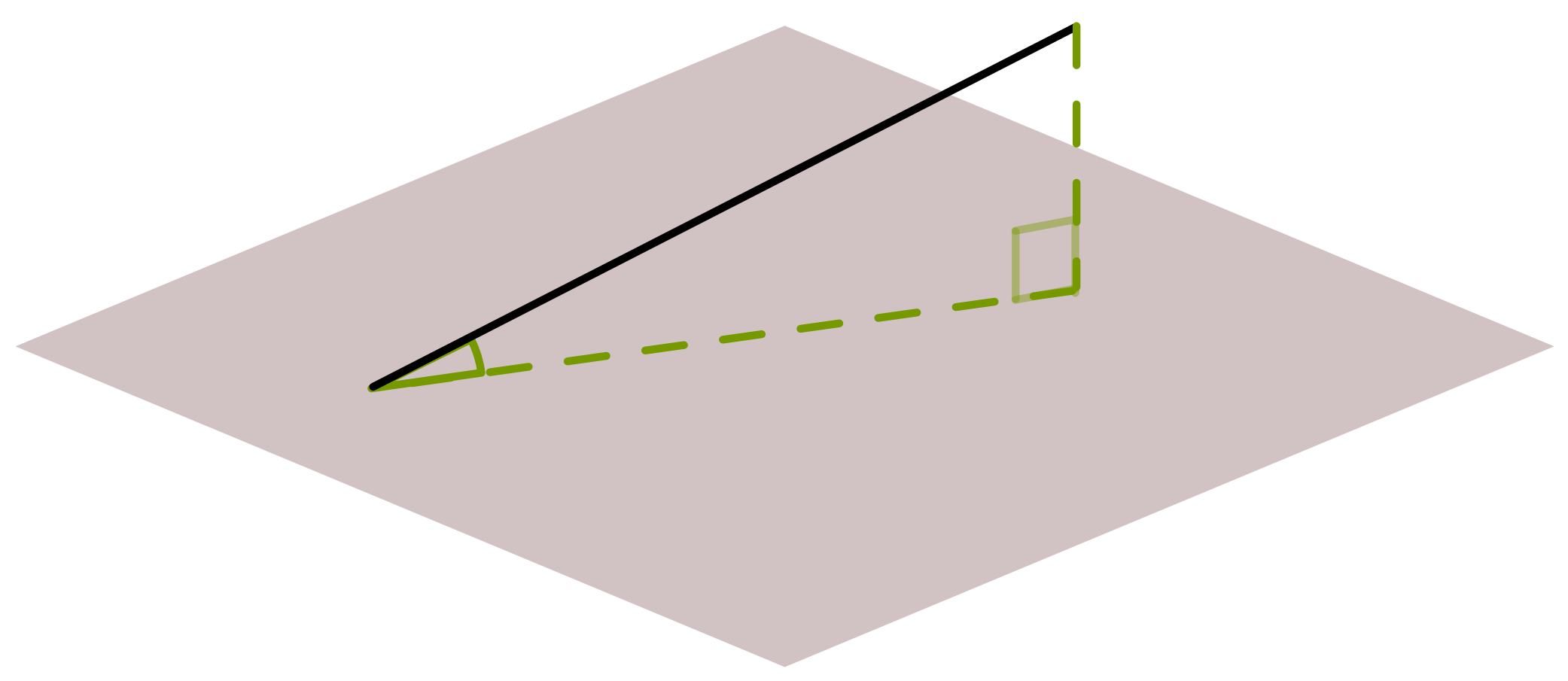 - Find the horizontal projection of the line onto the plane (often a base diagonal).