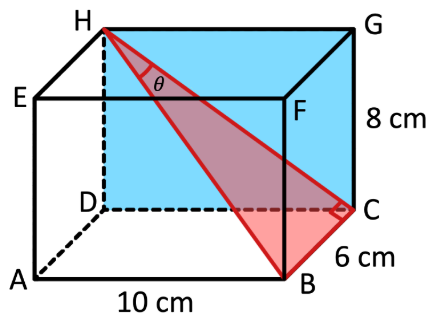 - \( \theta \) is the angle between line HB and the plane DCGH