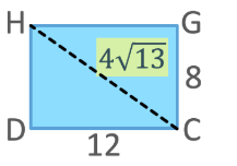 \( HC = \sqrt{12^2 + 8^2} = \sqrt{144 + 64} = \sqrt{208} = 4\sqrt{13}~\text{cm} \)