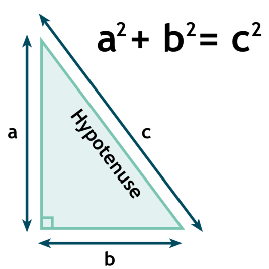 Or, more formally: \( c^2 = a^2 + b^2 \) where \( c \) is the hypotenuse (the side opposite the right angle).