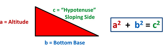 \( \text{Hypotenuse}^2 = (\text{Opposite side})^2 + (\text{Adjacent side})^2 \) or \( c^2 = a^2 + b^2 \)