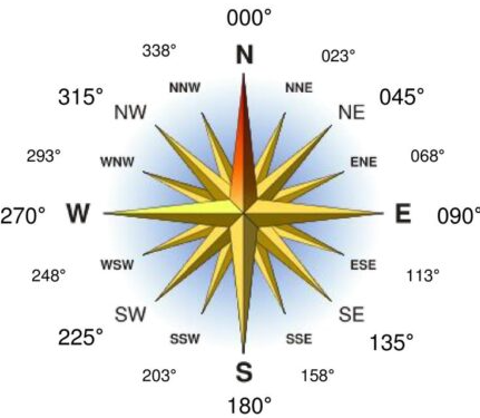 - Bearings are always written as three-digit numbers (e.g. 045°, 120°, 270°).